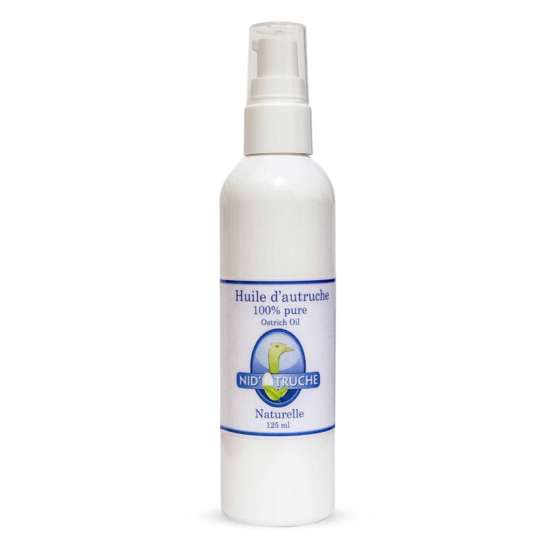 Elle contient des omégas 3,6 et 9. Une huile riche en acides gras essentiels. Elle laisse donc une peau douce et non-graisseuse. Ingrédients : Huile d’autruche et vitamine E. Mode d’emploi : Appliquer 3 fois par jour sur les zones à traiter. Utiliser une petite quantité à chaque utilisation. Si l’huile est plus onctueuse, vous pouvez réchauffer la bouteille sous l’eau chaude.